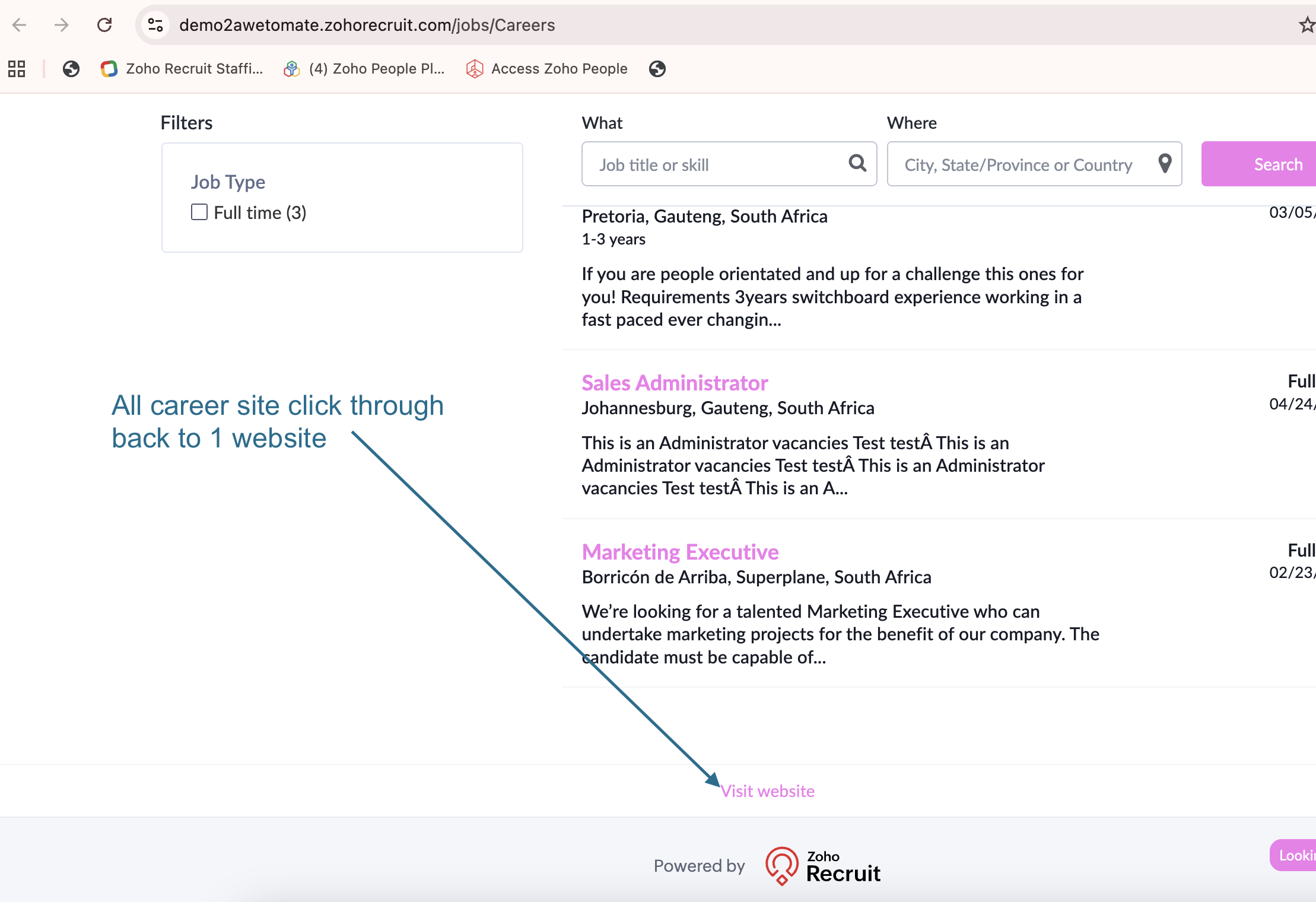 2. All career sites click through to the main domain (or sub domain such as https://jobs.yourdomain.co.za)