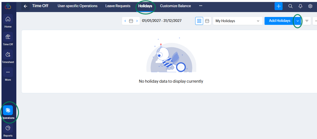 Operations > Time Off > Holidays > Add Holidays > Holiday Gallery